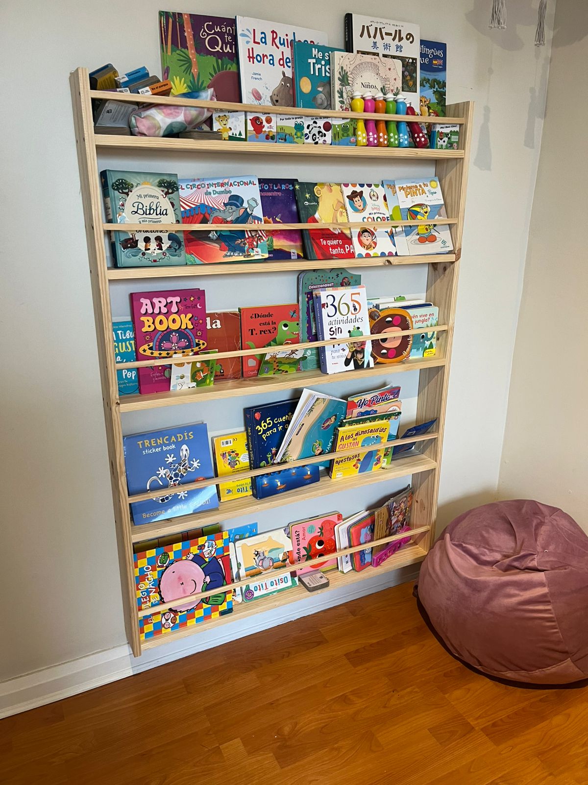 Dale un toque cálido y organizado al espacio de los más pequeños con nuestra repisa de madera de pino natural. Totalmente personalizable, puedes elegir su altura entre 40 cm y 140 cm, su ancho entre 60 cm y 100 cm, y configurar desde 2 hasta 5 niveles para adaptarse a tus necesidades. Perfecta para exhibir libros, juguetes y objetos decorativos, fomentando la autonomía de los niños al tener sus cosas siempre a la vista y a su alcance. Su diseño simple y funcional se integra fácilmente en cualquier ambiente, aportando un estilo acogedor y ordenado. Ideal para dormitorios, salas de juegos o rincones de lectura.