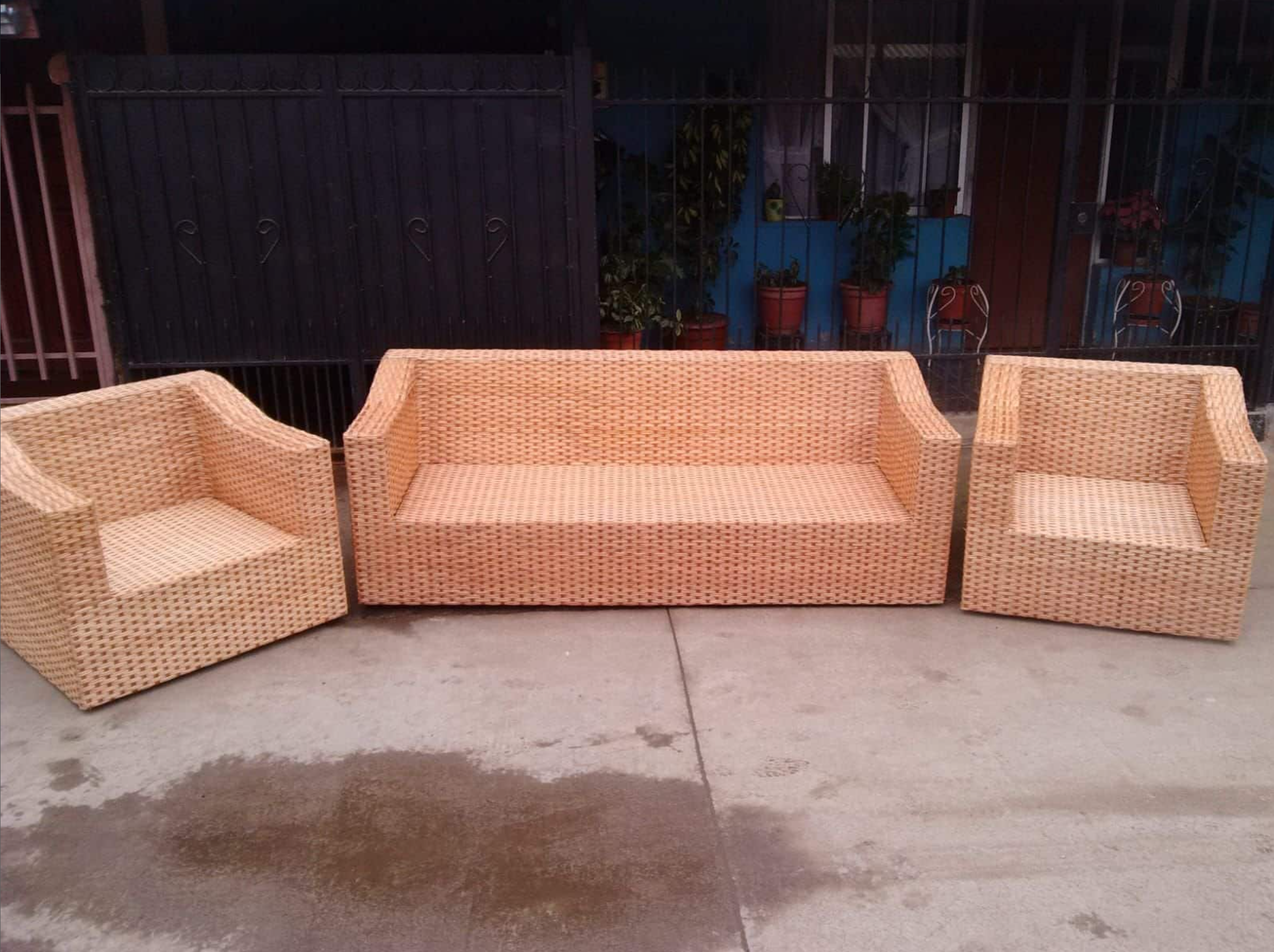 Sofá de terraza de mimbre sintético con diseño amplio y envolvente. Ideal para exteriores, combina estilo natural, comodidad y resistencia, creando un espacio perfecto para compartir y descansar.